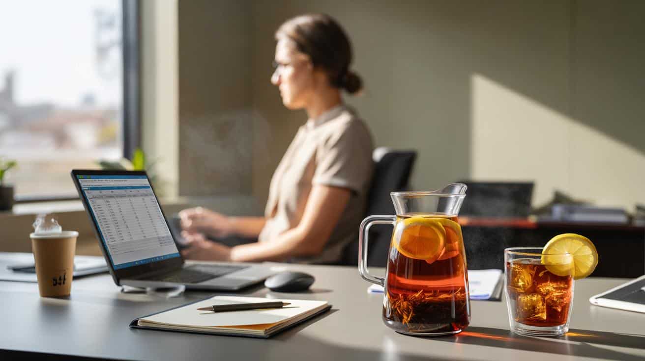 So one Monday, I walked past the café downstairs and straight into the supermarket. I grabbed a box of plain rooibos tea, a lemon, and a cheap 1‑litre glass jug. That afternoon, instead of lining up for coffee, I filled the jug with water, tossed in two rooibos bags and a few lemon slices, and left it on my desk like a tiny science experiment.
