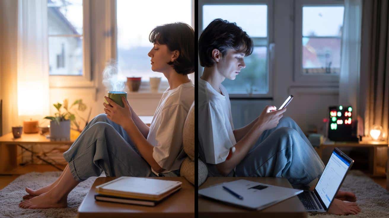 Laptop shut, notifications muted, soft light on in the kitchen. You stand there scrolling, one hand on a mug that’s gone cold, telling yourself you’re “switching off”. Your brain feels fried, but instead of resting, you fall into a bottomless feed of videos and half-read messages. An hour passes. Your shoulders are tighter, not looser. Your mind feels heavy, yet still strangely restless.