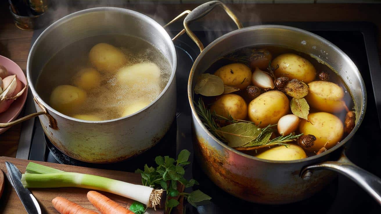 Salt in the broth doesn’t just season, it changes the texture. It helps the potato keep its shape, especially for salads or pan‑frying later. The herbs and vegetables donate their oils and sugars, which cling to the starch. *That’s why a broth‑cooked potato tastes good even before you dress it with anything.*
